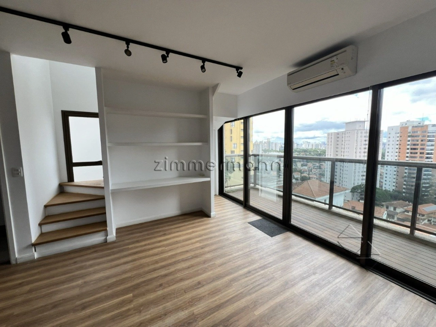 A sala possui 67 m² com sacada, 2 pisos com entradas independentes, 3 banheiros, copa e equipada com ar condicionado.